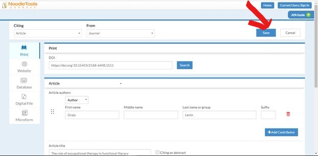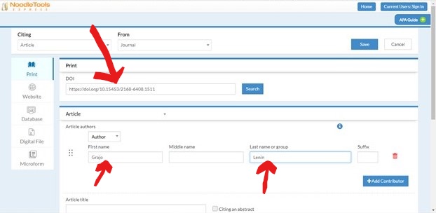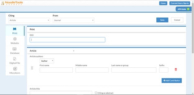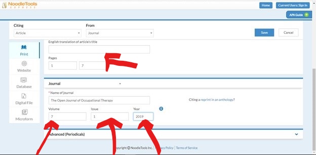 Noodle Tools Express I learned of this reference tool from a student. This tool formats references when you input the information. The citation manager above is great when you have a reference type that is readily available such as a journal or book. However, what if the reference is a PowerPoint presentation or a podcast? Noodle Tools Express formats the reference based on information that is inputted. While inputting information, Noodle Tools Express also provides feedback if you are inputting information outside of the APA formatting parameters. For example, if you are capitalizing every first word in a title, you will get a message the capitalization is not following APA format. There are also pointers with copying and pasting the reference. The screenshots below provide a visual of the process.