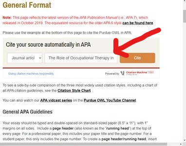 Purdue also has a Citation Manager that can provide reference list and in-text citation formatting if the reference is contained within the many databases that are searched by this tool. Here are some screenshots of the tool at work: